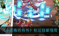 在小浣熊百将传中有很多小伙伴都很想知道游戏中杜迁的技能强度怎么样,今天小编给大家带来了《小浣熊百将传》杜迁技能强度一览,感兴趣的小伙伴一起来看看吧,希望可以帮助到大家。《小浣熊百将传》杜迁技能强度一览怒气技 - 青天压顶杜迁双手持棍原地高高跃起,短暂滞空后,双手持棍重重砸下攻击前方敌人,被击中的敌人受到260%攻击力的物理伤害并且击倒。2级:伤害提升至300%攻击力。3级:成功击倒目标后眩晕目标3秒擎天一棍杜迁用天王棍在前方舞出一片棍花,每秒对周围敌人造成攻击力50%的伤害,持续时间内处于霸体状态,且受到近战攻击时将受到伤害的70%反弹给攻击者,持续5秒。2级:反弹伤害比例提升至95%。3级:造成伤害提升至65%攻击力。4级:反弹伤害比例提升至120%%。天王在世战斗中,杜迁受到的伤害减少5%,受到的治疗效果提