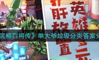 小浣熊百将传单大爷垃圾分类答案是什么?《小浣熊百将传》游戏中单大爷垃圾分类答案相信很多玩家都想知道吧,那么今天小编就给大家介绍一下小浣熊百将传单大爷垃圾分类答案分享,有需要的小伙伴不要错过了。 《小浣熊百将传》单大爷垃圾分类答案分享 1、一次性餐具2、厨余3、干脆面口袋是其他垃圾4、药渣是有害垃圾5、破船是可回收垃圾以上就是《小浣熊百将传》单大爷垃圾分类答案分享,更多游戏攻略请持续关注3DM手游网!