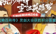 《小浣熊百将传》游戏中“想在灵剑大会中获得胜利,需要得到多少积分”是今日仙王问答题目,答案就是100分,那么今天小编就给大家介绍一下小浣熊百将传灵剑大会获胜积分答案一览,有需要的小伙伴不要错过了。 《小浣熊百将传》灵剑大会获胜积分答案一览1.答案:100 2.问题:想在灵剑大会中获得胜利,需要得到多少积分?3.选项:10、50、1004.“想在灵剑大会中获得胜利,需要得到多少积分”是仙王的日常问答题目(56)题。5.累计通过仙王的日常问答答题60次即可获得王令,若已获得王令,则奖励将替换为弹珠券×50。以上就是《小浣熊百将传》灵剑大会获胜积分答案一览,更多游戏攻略请持续关注3DM手游网!