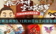 《小浣熊百将传》手游中的仙王问答是一个答题活动,相信还有很多小伙伴不是很清楚12月30日仙王问答答案是什么,今天小编就给大家介绍一下《小浣熊百将传》12月30日仙王问答答案介绍,有需要的小伙伴不要错过了。《小浣熊百将传》12月30日仙王问答答案介绍【答案介绍】 问题:想在灵剑大会中获得胜利,需要得到多少积分? 选项:10、50、100答案:100 “想在灵剑大会中获得胜利,需要得到多少积分”是仙王的日常问答题目(56)题。累计通过仙王的日常问答答题60次即可获得王令,若已获得王令,则奖励将替换为弹珠券×50。以上就是《小浣熊百将传》12月30日仙王问答答案介绍,更多游戏攻略请持续关注3DM手游网!