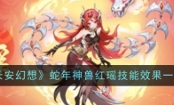 长安幻想蛇年神兽红瑶曝光!作为上古吞天蟒的后代的红瑶,自带【蛇魂】特性。通过叠加【蛇魂】强化攻击能力,并唤起与之共生的【赤练】觉醒,共同对敌人造成伤害。历经岁月洗礼的红瑶,不再执迷于龙之高贵,誓以一己之力,扭转世人对蛇的偏见与畏惧。 长安幻想蛇年神兽红瑶技能效果一览 1、狂舞红瑶对2名敌人发起物理攻击,并能获得1层【蛇魂】,最多可存在3层。回合末若红瑶拥有3层【蛇魂】时,与之共生的【赤练】立即觉醒。【赤练】:红瑶释放狂舞后,赤练将消耗1层【蛇魂】对2名敌人造成一次物理伤害,将优先攻击红瑶本回合攻击过的目标,【蛇魂】消耗完后退出觉醒状态。*赤练觉醒期间无法获得【蛇魂】2、蛇之咒印回合初红瑶对选中目标施加【蛇印】,并在出手时对选中的目标造成较高的物理伤害。*【蛇印】:被攻击时为施术者回复一定的生命值(根据伤害量而定