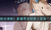 《绝对演绎》游戏中的直播带货活动中需要玩家完成答题,相信还有很多小伙伴不是很清楚直播带货胡萝卜答案是什么,那么今天小编就给大家分享一下《绝对演绎》直播带货胡萝卜答案一览,感兴趣的小伙伴们一起来看看吧。 《绝对演绎》直播带货胡萝卜答案一览【答案一览】 1、胡萝卜正确答案:胡萝卜、亚洲西部、日本、光滑、橘黄色、翠绿、小人参、降压消炎。2、上面就是胡萝卜的答案了,把正确答案填写到空白位置就可以了,顺序可能有点不对,按照给出的问题填写就没多大问题。以上就是《绝对演绎》直播带货胡萝卜答案一览的全部内容了,更多游戏攻略请持续关注3DM手游网!