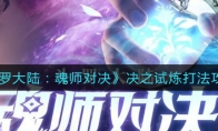 在斗罗大陆魂师对决中有很多小伙伴都很想知道游戏中的勇之试炼应该怎么打,今天小编给大家带来了《斗罗大陆:魂师对决》勇之试炼打法阵容推荐,感兴趣的小伙伴一起来看看吧,希望可以帮助到大家。《斗罗大陆:魂师对决》勇之试炼打法阵容推荐鬼魅+梦神机+火舞+宁风致+水冰儿+唐三/胡列娜+绛珠+风笑天魂环配置风笑天——1221唐三——1112绛珠——1222火舞——2112梦神机——2122宁风致——2211鬼魅——1221水冰儿——111具体打法①鬼魅(点速度)一速拉条打火(第一魂技)第四魂技使用时间——风笑天使用第四魂技后/宁风致叠满印记且魂力足够释放第一魂技时②梦神机推条增伤(自动挂第一魂技)+控制、第二魂技增伤降速,使敌方风笑天第一回合难以先手开启极速③火舞自动第四魂技配合火棘增伤④宁风致自动第一魂技挂七宝印记优先级: