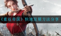 2022-01-30 阅读全文在《重返帝国》这款游戏中,前期资源稀少,兵力羸弱,所以前期如何快速发展这个问题可谓是难倒了大部分玩家呀,那么今天小编就给大家分享一下快速发展方法,有需要的小伙伴不要错过了。 快速发展方法分享 1,遇到攻击防御,看你主力队伍是武力还是守备,如上图黄色标注。比如剑士选择攻击,枪是守备成长就选择防御。2,遇到产量优先选择食物,除了新手发育期,食物是最重要的资源,没有之一。涉及治兵,训练兵。3,资源地的占领时间减少、放弃时间减少以及选择放弃减少,因为后期我们要频繁的更换高等级资源地,放弃的时间长要等很久,涉及到迁城和我们正常玩大概是在前面的梯队,因为直升已占有的资源地是不现实的。4,遇到训练时间较少和训练数量增加,选择时间减少,加的数量没多少,训练时间又很久,因此怎么抉择大家也懂了吧。以上就是小编带来的《重返帝国》快速