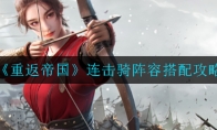 《重返帝国》作为一款即时操作战略手游,排兵布阵已是常态,想必还有很多小伙伴不知道连击骑阵容怎么搭配吧,那么今天小编就给大家介绍一下连击骑阵容搭配攻略,有需要的小伙伴不要错过了。 连击骑阵容搭配攻略 主将:关羽。搭配技能:致命一击,怒击扬志。副将:龙胆神将。搭配技能:冲锋的极意,弱点进攻。副将:兰陵假面。搭配技能:破敌之眼、胜利军规。阵容评价:核心辅助兰陵假面依靠固有技能为全队提供连击状态,大幅提升普攻的伤害和追击技能的触发概率。以上就是小编带来的《重返帝国》连击骑阵容搭配攻略,更多相关游戏攻略,请关注3DM手游网。