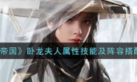 《重返帝国》是一款新颖的策略战争游戏,其中卧龙夫人是一名非常不错的英雄,相信还有很多小伙伴不是很清楚卧龙夫人怎么样,下面小编给大家带来《重返帝国》卧龙夫人属性技能及阵容搭配介绍,小伙伴们一起来看看吧。 《重返帝国》卧龙夫人属性技能及阵容搭配介绍【英雄介绍】 英雄:卧龙夫人【输出·主动】奇策迭出的神秘美人。智计无双可定江山,算无遗策可安天下。兵种特性:弓战斗风格:智谋 【技能介绍】 1.主将技【机巧神兵】对目标敌军造成谋略伤害(谋略加成),并施加虚弱状态,持续3秒。2.固有技能【奇门遁甲】主动:进入准备状态,3秒后对敌军造成谋略伤害(谋略加成),并根据敌军已有的异常状态造成额外效果。燃烧状态:造成额外谋略伤害(谋略加成);沉默状态:清除对方非印记类的增益状态;虚弱状态:恢复我军兵力(谋略加成)。 【技能搭配推荐】