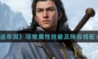 《重返帝国》是一款新颖的策略战争游戏,其中项楚是一名非常不错的英雄,相信还有很多小伙伴不是很清楚项楚怎么样,下面小编给大家带来《重返帝国》项楚属性技能及阵容搭配介绍,小伙伴们一起来看看吧。 《重返帝国》项楚属性技能及阵容搭配介绍【英雄介绍】 英雄:项楚【输出·反击】出身名门,力能扛鼎的枪神。他出生的那一天,红云蔽日,被预言为霸王降世。兵种特性:枪战斗风格:勇武 【技能介绍】 1.主将技【霸王降世】对周身范围内最多3支敌军造成武力伤害(武力加成),根据当前拥有的霸王印记层数造成额外伤害(每层提升10%,最多100%,乘法计算,伤害率最大翻倍),并使敌军在3秒内,移动速度降低20%。2.固有技能【破釜沉舟】被动:我军每次受到普通攻击,会叠加一层霸王印记(每秒最多叠加2层),叠满20层后消耗印记,并对敌军造成一次武力