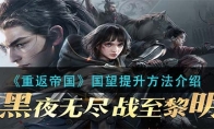 在重返帝国游戏中很多玩家还不清楚,国望的提升方法有哪些。接下来就让小编给大家带来《重返帝国》国望提升方法介绍,感兴趣的小伙伴们一起来看看吧,希望可以帮助到大家。 《重返帝国》国望提升方法介绍【获取方法】 随着帝国的建立,列王的时代降临,这是领主们征战王城的根基。建立帝国后,将会解锁国望功能,帝国的国望级别提升,将会获得大量资源奖励以及各方面的属性增益效果。国望可通过各级城市额外产出,占领更多高级城市可有效提升国望;击杀稀有蛮族和蛮族头目可获得国望券,在排行榜中对指定帝国使用,可增加或减少其国望。 以上就是《重返帝国》国望提升方法介绍的全部内容了,更多手游攻略请关注3DM手游网!
