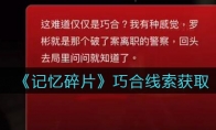孙美琪疑案记忆碎片三级线索——巧合在哪里呢?《记忆碎片》疑案是孙美琪疑案第七季第五集,游戏中线索很多,大家可能不能一一找到,下面是3DM手游网珞珞小编给大家带来的《孙美琪疑案:记忆碎片》巧合线索位置获取方法攻略介绍,正在找线索的小伙伴一起看看吧!>>>>小编推荐:《孙美琪疑案:记忆碎片》攻略线索大全>>>>小编推荐:《孙美琪疑案》系列游戏下载攻略汇总《孙美琪疑案:记忆碎片》三级线索——巧合巧合=罗彬身份+辞职时间+旧案传闻线索详情:这难道仅仅是巧合?我有种感觉,罗彬就是那个破了案离职的警察,回头去局里问问就知道了。>>>>小编推荐:《孙美琪疑案》系列顺序攻略合集以上就是3DM小编整理带来的《孙美琪疑案:记忆碎片》巧合线索位置获取介绍,大家还