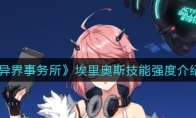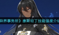 异界事务所伊芙琳怎么样?《异界事务所》游戏中伊芙琳的技能强度很多玩家不了解,那么今天小编就给大家介绍一下异界事务所伊芙琳技能强度,有需要的小伙伴不要错过了。 《异界事务所》伊芙琳技能强度介绍普通攻击:在空中投掷药瓶,对目标及其周围的敌人造成范围伤害。有效打击数:2 LV2/3/4/5:普攻伤害+5%被动技:挥洒诡异却有着显著疗效的药粉。每4次普通攻击:将恢复周围友军2%的体力。LV2/3:体力+5%;LV4:体力+10%LV5:被动技能范围+50%特殊技:投掷装有高浓缩毒液的药瓶,前方生成一片能造成范围伤害的毒云持续5秒CD:20秒;有效打击数:2LV2/3:伤害+5%;LV4:伤害+15%;LV5:毒云范围+50%,并对受到伤害的敌人造成僵直终极技:以秘法演算最优的组合方式,恢复友军20%的体力(自身除外),