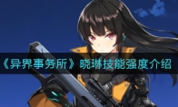异界事务所晓琳怎么样?《异界事务所》游戏中晓琳的技能强度很多玩家不了解,那么今天小编就给大家介绍一下异界事务所晓琳技能强度,有需要的小伙伴不要错过了。 《异界事务所》晓琳技能强度介绍普通攻击:射出一发狙击枪子弹,对最前方敌人造成单体伤害有效打击数:1LV2/3/4/5:普攻伤害+5%被动技:通过调节生物电流提高狙击精度,攻击距离越远,攻击伤害越高,最多可提升20%LV2/3:暴击伤害+5%;LV4:暴击伤害+10%LV5:普攻必定暴击特殊技:用狙击枪连射3次,对最前方敌人造成伤害,超过有效打击数的敌人不受伤害,圣凯中取消贯通属性。CD:20秒;有效打击数:2LV2/3:伤害+5%;LV4:伤害+15%LV5:攻击对象距离越远,伤害越高,最多可增加20%终极技:发射一枚蕴藏特殊力量的子弹,对前方造成范围伤害,并掀