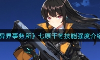 异界事务所七原千冬怎么样?《异界事务所》游戏中七原千冬是个不错的角色,那么技能如何呢?今天小编就给大家介绍一下异界事务所七原千冬技能强度,有需要的小伙伴不要错过了。 《异界事务所》七原千冬技能强度介绍普通攻击:挥舞刀剑对前方造成范围伤害。有效打击数:2LV2/3/4/5:普攻伤害+5%被动技:使用连击击破敌人的防御。每4次普通攻击后附加一次额外攻击造成击退有效打击数:1LV2/3:对护卫单位造成的伤害+5%;LV4:对护卫单位造成的伤害+10%LV5:额外攻击伤害+50%特殊技:使用拔刀术对前方敌人造成范围伤害。施放技能后防力提升25%,持续10秒CD:18秒;有效打击数:3LV2/3:伤害+5%;LV4:伤害+15%LV5:添加施放技能后,伤害减免率+10%的效果,持续10秒终极技:上挑后派生多段剑技,对前方