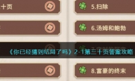 《你已经猜到结局了吗》是一款好玩的休闲养成解谜游戏,玩家将深入了解各种凶杀案,通过询问获得案件线索,成功找到真正的凶手。游戏中第二章第3关怎么过呢?下面小编给大家带来了《你已经猜到结局了吗》2-3大雨答案攻略介绍,一起看看吧!>>>>《你已经猜到结局了吗》攻略大全>>>>《你已经猜到结局了吗》礼包兑换码大全2022《你已经猜到结局了吗》2-3大雨答案攻略2-3、大雨1、关卡剧情有一群人边听着音乐唱歌一边前进,可是突然下雨了,大家纷纷加快步伐。到了目的地之后所有人都被淋湿了,除了卡特,为什么呢?2、攻略流程提示选项「卡特」:「一起走」(解锁第4个提示选项「移动」)。提示选项「一群人」:「队形」。提示选项「骤雨」:「大雨」。提示选项「移动」:「自主移动」、「被抬着」。