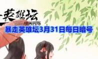暴走英雄坛4月9日【糖葫芦在哪个npc处出售】暗号答案是什么?这是微信公众号中推出的题目,知道答案之后就可以在游戏中领取奖励了哦。下面给大家带来的就是《暴走英雄坛》4月9日暗号答案介绍了,还不清楚答案的一起看看吧!>>>>小编推荐:《暴走英雄坛》每日暗号答案汇总>>>>小编推荐:《暴走英雄坛》暗号大全2020年4月暴走英雄坛4月9日每日暗号答案2020暗号题目:糖葫芦在哪个npc处出售暗号答案:小商贩武学评价不堪一击(1级)略知一二(10级)初学乍练(20级)懂得皮毛(30级)初出茅庐(40级)初窥门径(50级)(一级潜力1200起)略有小成(60级)(一级潜力2200起)略有大成(70级)出类拔萃(80级)登堂入室(90级)青出於蓝1~10重(100级~190级