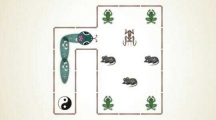 13关中是两只青蛙两只老鼠一只螳螂的配置,并且地图似乎也比上一关宽阔了一些,处处给人一种这一关比较简单的错觉,不过错觉就是错觉,如果因此而掉以轻心可是会失败的哦!好好想一想哪里是陷阱呢?蛇它虫第13关攻略 先吃面前这个老鼠在向上走吃右边的青蛙调转,向上走吃老鼠和螳螂,在贴着墙走吃左边的青蛙调转进太极图。左上上上-右右上上右-上左左下左-下,通关。