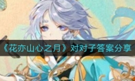 《花亦山心之月》游戏中花朝如期大景必玩对对子活动已经上线了,玩家们需要根据前面一句对出后面一句,成功答出的玩家会获取奖励,那么今天小编就给大家介绍一下花亦山心之月对对子答案分享,有需要的小伙伴不要错过了。 《花亦山心之月》对对子答案分享 琴瑟琵琶八大王,魑魅魍魉四小鬼牛女二星河左右,参商两曜斗西东朝云朝朝朝朝退,长水长长长长流青龙偃月斩五将,金箍如意降百魔两个黄鹂鸣翠柳,一行白瓷上青天一帆一浆一渔舟,一个渔翁一钓钩垂死病中惊坐起,暗风吹雨入寒窗劝君更尽一杯酒,西出阳关无故人三顾频烦天下计,两朝开济老臣心何当共剪西窗烛,却话巴山夜雨时以上就是《花亦山心之月》对对子答案分享,更多游戏攻略请持续关注3DM手游网!