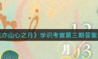 《花亦山心之月》游戏中推理考试第三期已经更新了,很多玩家想知道答案是什么,那么今天小编就给大家介绍一下花亦山心之月推理考试第三期答案分享,有需要的小伙伴不要错过了。 《花亦山心之月》推理考试第三期答案分享 一、【关键词解锁】 皇帝→朝政大事都一一过问吗?→解锁【宦官】二、【故事脉络】 1、魏家军为什么落得悲惨下场?-世代忠良深得民心,宦官不满2、皇帝为什么要治罪?-对魏家军心存忌惮3、魏家被定的罪不包括哪一条?-谎报军情4、是个前朝的势力斗争下,忠良不能善终的故事。掌权者都是一样的,兔死狗烹永远不是新鲜事。5、温馨提示again:准时参加考试会有额外加分,即满分105分。6、全部考试结束前都可以补考,没有拿到满分也可以补考,补考全对满分100分。以上就是《花亦山心之月》推理考试第三期答案分享,更多游戏攻略请持续
