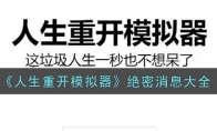 人生重开模拟器是近期爆火的一个文字类的游戏,非常的魔性,相信有很多小伙伴不是很清楚人生重开模拟器绝密消息有哪些,接下来就让小编给大家带来人生重开模拟器绝密消息大全,感兴趣的小伙伴一起来看看吧。绝密消息大全游戏链接:http://liferestart.syaro.io/view/ 【绝密消息数量】 游戏中共有14条绝密消息,以及一条绝绝子消息。【绝密消息】 【绝密消息】科学家认为大多数人的天赋都是来人间凑数的。【绝密消息】你捡到一张纸条,上面写着一位策划的联系方式:846945492【绝密消息】你捡到一张纸条,上面写着一位程序的联系方式:1281616438。【绝密消息】据说,修仙者是真实存在的……【绝密消息】据说,正常人无论如何都活不到100岁,除非……有个小盒子?【绝密消息】考古学家发现一粒古代的药丸,看上