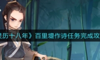 《灵历十八年》游戏中百里堤作诗任务很多玩家不知道流程是什么,那么今天小编就给大家介绍一下灵历十八年百里堤作诗任务完成攻略,有需要的小伙伴不要错过了。 《灵历十八年》百里堤作诗任务完成攻略1.在竹里第处,选择选项:诗漏齐趋圣节筵,云开全阙上青天,天明引入长生殿,共祝尧云百万年。2.晚上会遇见灵药仙子可以购买丹方,池塘处钓鱼,需要扶鱼竿。3.在寨主居室处,琴先去孟津原的矿区捡炸药包,再回来炸开宝箱。以上就是《灵历十八年》百里堤作诗任务完成攻略,更多游戏攻略请持续关注3DM手游网!