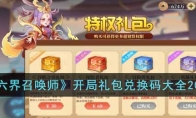 六界召唤师开局礼包兑换码有哪些?六界召唤师是一款热度很高的国风放置类手游,游戏官方为了回馈玩家发送了大量的开局礼包,玩家只需要用兑换码进行兑换就能获得,那么六界召唤师开局礼包兑换码有哪些呢?以下是小编带来的六界召唤师开局礼包兑换码大全2022,一起来看看吧。 《六界召唤师》开局礼包兑换码大全2022: 首先其实这个游戏运气也是占一大部分的,所以说如果想要自己运气开局就比别人要好,那建议是要选开局,可以多创号,选一个合适的开局,因为这个游戏会有很多礼包码,如下:WENAN1WENAN2WENAN3WENAN4ONLYU555ONLYU666ONLYU777ONLVU888VIP222VIP333VIP444SVIP666SIP888XIAOCIJIAQUNGUOQ22GUOQ22VCYANG22CYANG22V加