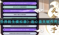 在异世界转生模拟器游戏中,有许多不同的出生天赋可以选择,其中很多玩家还不清楚连心蛊天赋的具体作用是什么。接下来就让小编给大家带来《异世界转生模拟器》连心蛊天赋作用介绍,感兴趣的小伙伴们一起来看看吧。 《异世界转生模拟器》连心蛊天赋作用介绍作用介绍: 1、连心蛊天赋作用是遇到了个小师弟漓尘,会丰富多一点剧情。但是第三次还是第四次雷劫如果之前没过白洛竹剧情还是过不去。第四次的话,就是要那个发明家天赋,然后选避雷针。 2、连心蛊天赋名为连心却心离,选择这个天赋后会出现有新的剧情,大家可以去感受感受。3、综上所述,选择连心蛊天赋就出现漓尘小师弟等剧情,体验一番很不错哦。以上就是《异世界转生模拟器》连心蛊天赋作用介绍的全部内容了,更多手游攻略请关注3DM手游网!