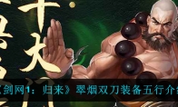 在剑网1归来中装备有着独特的五行系统,很多小伙伴都很想知道翠烟双刀的装备五行是什么,今天小编给大家带来了《剑网1:归来》翠烟双刀装备五行介绍,感兴趣的小伙伴一起来看看吧。《剑网1:归来》翠烟双刀装备五行介绍翠烟作为水系职业,无论是单刀翠烟还是双刀翠烟,都需要装备与自己同属性的武器和衣物,即水系。当装备上水系武器和衣物时,可获得该装备攻击属性的100%效果,如果未按照属性进行装备,只能获得该装备攻击属性50%效果,由此可见,装备和自身相同属性的武器和衣物是尤为重要的。五行相生:在《剑网一:归来》里,五行属性可谓是游戏特色之一。五行装备又分为内五行和外五行。内五行以衣物为主,依次顺时针分别装备:水→木→火→土→金,外五行同理。以翠烟为例,武器和衣物都为水系时,按照五行相生的顺序,(金生水,水生木,木生火,火生土,土