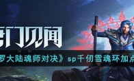 斗罗大陆魂师对决是角色扮演游戏,提供无限资源。比赛中,玩家将会得到大量的钻石和参加战斗pk。许多物品和设备都可以免费使用。在游戏中轻松升级装备灵魂大师,加入并寻找灵魂噬魂。斗罗大陆魂师对决sp千仞雪限时返场了,不少小伙伴抽取后想知道sp千仞雪用什么魂环怎么加点,下面小编为大家带来了斗罗大陆魂师对决sp千仞雪魂环加点攻略,来看看吧。《斗罗大陆魂师对决》sp千仞雪魂环加点推荐一、魂环加点短图魂环配置:21X1长图魂环配置:1212加点:攻击/暴伤二、PVP阵容搭配天使·千仞雪:2122 点攻击海魔女:1212 加点速度海马:2121 加点速度or生命宁荣荣:2222 加点速度奥斯卡:1111 加点速度白沉香:2122 加点速度备用(拓跋云、幽冥白虎、波赛西等)以上就是3DM小编整理带来的斗罗大陆魂师对决sp千仞雪魂