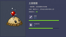 植物大战僵尸2植物图鉴又来了!如果遇见强力僵尸或僵尸群无法瞬间消灭怎么办,我们总需要炸弹类的及时清除僵尸的植物。接下来我们介绍有这样功能的土豆雷。看看植物大战僵尸2土豆雷有什么作用。《植物大战僵尸2》植物图鉴 土豆雷能力描述:土豆雷接触后就会爆炸,但它需要时间武装自己。在僵尸到来前种下它吧。解锁关卡:初始关卡能量豆效果:即刻武装好,并随机在任意2个瓦块上召唤出准备好的克隆体。装扮效果:能量豆效果升级——即刻武装好,并随机在任意3个瓦块上召唤出准备好的克隆体。基本信息花费阳光:25点充能速度:缓慢稀有程度:普通等级效果level 2:土豆雷武装时间变为7.5秒level 3:土豆雷即刻武装好自己level 4:无level 5:未知如果想了解更多相关信息,请关注我们的《植物大战僵尸2》专区。