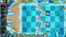 好了,在冰河世界的第16天,我们在这里见到了我们之前碰见的一切僵尸。野心家渡渡鸟,想度假的穴居人,combo伙伴滑雪僵尸和海象,尤其是高台滑雪,我们要使用从天而降的窝瓜从空中拦截他。这一关僵尸数量与种类繁多,需要各位去多次尝试。主要植物选择:阳光菇、火焰豌豆射手、双重射手、地刺、窝瓜、西瓜投手等。本关地形看似曲折复杂,实际上真正的通路只有从下往上数的2、3行,其余的路线都会被指到这两条上来。所以压力比较大的会是第二、三行左右。在这里海象开始往里面走,并且出现了新的能力——光滑冰面,总之就是让冰面变得光滑让滑雪僵尸能够冲刺,穴居僵尸推冰块更快,诸如此类功能。一旦出现滑冰僵尸飞奔前进,里面要使用单招或者是窝瓜解决,否则不堪设想,因为它会穿越植物直捣黄龙。冲刺状态的滑雪僵尸不会被浮冰影响方向,还有渡渡鸟骑士僵尸可以飞