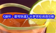 崩坏星穹铁道2.3版本新增任务需要调酒,那么崩坏星穹铁道长梦苦短怎么调呢?这个任务需要来到吧台的位置,在此和舒翁进行对话进入到调酒的页面按要求操作。下面是3DM小编给大家带来的《崩坏:星穹铁道》长梦苦短调酒攻略,感兴趣的小伙伴们一起来看看吧。崩坏星穹铁道长梦苦短调酒攻略:1、来到吧台的位置,在此和舒翁进行对话进入到调酒的页面。2、根据自己的偏好进行选择调味就可以了。3、选择小型古典杯,再选择加入冰块,可以加入少量或者是多量。4、此时可以看到长梦苦短的原料配方,根据这个配方加入液态黄昏 x2醒神苏打水x1。5、最后再装饰上切片柠檬之后,就能成功的调制出长梦苦短这个酒了。以上就是3DM小编整理带来的《崩坏:星穹铁道》长梦苦短调酒攻略,更多精彩内容,请点击关注3DM手游网,小编将持续为您更新!