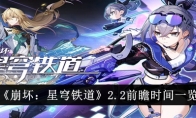 崩坏星穹铁道2.2前瞻是什么时候?崩坏星穹铁道2.1版本已经和大家见面很久了,但是很多小伙伴想要知道崩坏星穹铁道2.2前瞻时间,所以下面就是小编整理好的详细的前瞻时间,还没有了解到的小伙伴,就可以在此进行参考吧。《崩坏:星穹铁道》2.2前瞻时间一览时间:4月26日一、前瞻直播预约地址1、TapTap:https://www.taptap.cn/app/2242672、B站:直接搜索【崩坏星穹铁道】二、2.2卡池爆料介绍1、上半卡池:流萤、镜流(复刻)2、下半卡池:知更鸟、罗刹(复刻)3、上半卡池将在【2024年5月9日】开启4、下半卡池将在【2024年5月29日】开启以上就是3DM小编整理带来的崩坏星穹铁道2.2前瞻时间一览,更多相关游戏攻略,请关注3DM手游网!