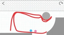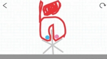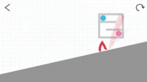 在下方画一个杠杆原理的一个杠杆,目的就是让粉红色球弹上去。然后再用一根斜的把粉红色的球赶过来,粉红色小球进到坑里面去以后,在杠杆的末端上面画一个重物,画好重物以后再释放,这样粉红色的小球就被弹飞到蓝色那里,游戏也就过关了。 脑点子116关怎么过? 如上图所示:先画出一个可以直达蓝球的坡道;然后画一个块状掉落,给红球推力;红球沿着坡道往上滚就可以和蓝球相碰啦!