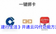 建行生活是建设银行推出的手机APP,为用户提供了一系列的线上服务,让大家可以直接在线查询办理,非常的方便。很多小伙伴还不太清楚建行生活怎么开通云网支付功能。下面,小编就来为大家介绍一建行生活下开通云闪付支付的方法。建行生活怎么开通云网支付功能?1、打开建行生活APP进入我的页面,点击银行卡。2、点击一键绑卡。3、点击云闪付。4、输入支付密码。5、点击下一步即可。以上就是小编带来的建行生活怎么开通云网支付功能?开通云闪付支付方法,更多相关资讯教程,请关注3DM手游网。