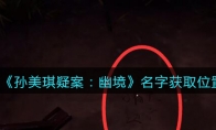 《孙美琪疑案:幽境》五级线索——名字在哪里呢?《幽境》是孙美琪疑案第八季第三集,游戏中线索很多,下面是3DM手游网小编给大家带来的《孙美琪疑案:幽境》名字线索获取位置介绍,还没有找到的小伙伴一起看看吧!>>>>小编推荐:《孙美琪疑案:幽境》攻略线索大全>>>>小编推荐:《孙美琪疑案》系列顺序攻略合集>>>>小编推荐:《孙美琪疑案》系列游戏下载攻略汇总《孙美琪疑案:幽境》五级线索——名字名字: 木人桩旁边地上,如图再熟悉不过的称呼了, 被写在地上,是他们来了吗?游戏背景金凤凰乘船回到了广东佛山。有人告诉她,“幽境” 发生了大事。金凤凰连夜赶往“幽境”到达时已是凌晨四点。以上就是3DM小编整理带来的《孙美琪疑案:幽境》名字线索获取位置,大家还喜