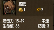 这次为大家带来的是《贪婪洞窟》里盗贼的图鉴介绍,盗贼也是低等级的怪物之一,各项属性都属于较低水准,给予的奖励也是很少,和异鼠一样属于最初级的怪物,我们一起来看看盗贼的具体属性。盗贼 金币奖励 1经验奖励 2攻击力 15-19攻击速度 中速生命值 86防御力 3元素属性攻击 火6元素属性防御 火2所在层数 1-10弱点 无