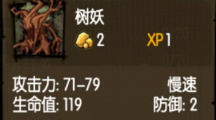 这次为大家带来的是《贪婪洞窟》里的树妖的图鉴介绍,树妖的属性属于新手怪当中偏高的,可能会对初期的玩家们产生不小的威胁,攻击力达到了惊人的70以上,如果不够小心,可能会翻车哦。下面我们一起来看看。树妖 金币奖励 2经验奖励 1攻击力 71-79攻击速度 中速生命值 119防御力 7元素属性攻击 草7暗6元素属性防御 草3暗2所在层数 1-10弱点 火