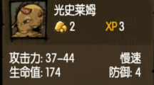 这次为大家带来的是《贪婪洞窟》光史莱姆的图鉴介绍,光史莱姆在10-20层出没,看起来并不像我们印象中的史莱姆,长得比较猎奇,10到20层的怪物也比1到10层的怪物的属性又提升了一个等级,下面让我们来看看它的具体属性。光史莱姆 金币奖励 2经验奖励 3攻击力 37-44攻击速度 慢速生命值 174防御力 4元素属性攻击 光12元素属性防御 光8所在层数 10-20弱点 无