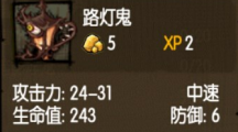 这次为大家带来的是《贪婪洞窟》的路灯鬼的图鉴介绍,路灯鬼是路灯吸收了怨念而变成的怪物形态,拥有多重元素属性,面板数据在怪物当中属于中规中矩的类型,对玩家构成的威胁并不是很大,下面我们来看看路灯鬼的具体属性。路灯鬼 金币奖励 4经验奖励 2攻击力 24-31攻击速度 中速生命值 243防御力 6元素属性攻击 草6暗6火6元素属性防御 草6暗6火7所在层数 10-20弱点 无