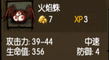 这次为大家带来的是《贪婪洞窟》里的火焰蛛的怪物图鉴介绍,火焰蛛是一种纯火属性怪物,有着单一的火属性攻击,它也会被水属性克制,长得有种诡异的萌感,总的来说这只怪物没有特别大的威胁,下面让我们来看看它的具体属性。火焰蛛 金币奖励 7经验奖励 3攻击力 39-44攻击速度 中速生命值 356防御力 4元素属性攻击 火22元素属性防御 火4所在层数 10-20弱点 水