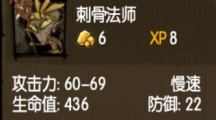 这次为大家带来的是《贪婪洞窟》里的刺骨法师的怪物图鉴介绍,刺骨法师血量和防御并不高,攻速也慢,但如其名字所说,刺骨法师有着较高的攻击力和元素攻击力,如果元素抗性不高,可能会陷入苦战,下面一起来看看它的具体属性。刺骨法师 金币奖励 6经验奖励 8攻击力 60-69攻击速度 慢速生命值 436防御力 22元素属性攻击 草42暗18元素属性防御 草12暗11所在层数 20-30弱点 无