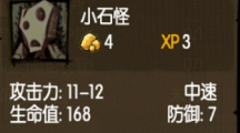《贪婪洞窟》里玩家在冲层的时候会遇到许多种类的怪物,每种怪有着不同的属性和弱点。洞窟里每10层是一个阶段,每20层出现一个新的boss,如果玩家可以更加了解怪物属性,使用克制的元素属性来攻击会更有效率,下面为大家带来的是小石怪的详细介绍。小石怪 金币奖励 4经验奖励 3攻击力 11-12攻击速度 中速生命值 168防御力 7元素属性攻击 火6元素属性防御 火4所在层数 1-10弱点 水