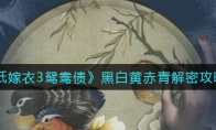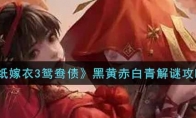 《纸嫁衣3鸳鸯债》游戏中黑白黄赤青是个抽屉锁解密的关卡,很多玩家不知道怎么解,那么今天小编就给大家介绍一下纸嫁衣3鸳鸯债黑白黄赤青解密攻略,有需要的小伙伴不要错过了。相关推荐:《纸嫁衣3鸳鸯债》全章节通关攻略大全 《纸嫁衣3鸳鸯债》黑白黄赤青解密攻略 1.黑:看不见青小人所站的字,顾最远为“病”2.黄:不要得到白小人蒙蔽,顾最近为“老”3.赤:按照白小人所指的字,顾为“生”4.白:指的最远的距离,顾黄色小人所站的字“生”5.青:按照黑色小人指的字顾“嫁”以上就是《纸嫁衣3鸳鸯债》黑白黄赤青解密攻略,更多游戏攻略请持续关注3DM手游网!