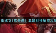 《纸嫁衣3鸳鸯债》游戏中第四章北斗七星很多玩家不知道怎么解谜,那么今天小编就给大家介绍一下纸嫁衣3鸳鸯债第四章北斗七星解谜攻略,有需要的小伙伴不要错过了。《纸嫁衣3鸳鸯债》第四章通关攻略手机打开,上面的北斗七星会亮,手机能看到雕像头顶顺序第四章通关流程1.月老手里盒子密码:以和为贵指的就是把那个窗子上的数加起来就行了。2.为什么要关闭2号开关?2号开关是照着元宝的,元宝是夜光的,只有关了灯才能找到元宝。3.大凶中吉怎么看?易什么的那个店书架有本书,点开那本书就是大凶之些了。4.香在哪里找?左边盒子里是香,右边盒子里还有别的,密码的提示都是那四个棺材,只是顺序不一样。以上就是关于《纸嫁衣3鸳鸯债》第四章北斗七星解谜攻略,咱们下期再见!