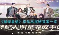 在璀璨星途游戏中很多玩家还不清楚,李佑丞探班提问的答案是什么。接下来就让小编给大家带来《璀璨星途》李佑丞探班答案一览,感兴趣的小伙伴们一起来看看吧。 《璀璨星途》李佑丞探班答案一览 姓名:李佑丞性别:男生日:9月13日年龄:26岁身高:187cm体重:73kg血型:A型星座:处女座职业:舞台音乐剧演员擅长:骑马、打高尔夫爱好:天文学、科幻小说李佑丞喜欢葡萄酿、牛排、音乐剧门票、高级餐具。以上就是《璀璨星途》李佑丞探班答案一览的全部内容了,更多手游攻略请关注3DM手游网!