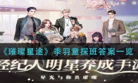 在璀璨星途游戏中很多玩家还不清楚,季羽童探班答案是什么。接下来就让小编给大家带来《璀璨星途》季羽童探班答案一览,感兴趣的小伙伴们一起来看看吧,希望可以帮助到大家。 《璀璨星途》季羽童探班答案一览 姓名:季羽童性别:女生日:6月1日年龄:19岁身高:168cm体重:46kg血型:A型星座:双子座职业:摇滚歌手擅长:摇滚、电子乐、街舞爱好:滑板、网球季羽童喜欢奶茶、三文鱼寿司、兔子玩偶、滑板。以上就是《璀璨星途》季羽童探班答案一览的全部内容了,更多手游攻略请关注3DM手游网!