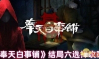 奉天白事铺结局怎么样,剧情结局是会转向不同的方向,因为玩家的选择不一样,小编今天给玩家带来结局六的剧情选择,不一样的结局不一样的走向,和小编一起来看看在剧情选项上如何选择吧!《奉天白事铺》结局六选择攻略:一、结局六选择灰老爷是杀死方老爷的凶手,方少爷和荣二被戴岳行杀死,其中荣二在家中被杀死。最后戴岳行进入监狱,方太太跳河自尽,灰老爷寿命已尽,在牢里死亡。片尾出现修女控制戴岳行的画面,暗示修女可能是幕后操控人物的大BOSS。二、触发条件(补充:序章-是否询问荣二,选择“是”)(补充:第一章-结尾墓地对话是否怀疑,选择“是”)(补充:第三章-教堂与修女对话询问方太太,选择“是”)1、序章时,在停尸房点击尸体后,与人物对话时需选择“忽略”。2、第一章时,在走出八卦阵门的房子,与人物对话时需选择“无视”。3、第三章时,