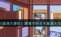 脑洞大掌柜是一款近期非常火爆的益智类的小游戏,游戏中唐寅字画丢失案怎么过呢?下面是3DM小编给大家带来的《脑洞大掌柜》唐寅字画丢失案通关攻略,感兴趣的小伙伴们一起来看看吧。>>>>>《脑洞大掌柜》全关卡通关攻略大全《脑洞大掌柜》唐寅字画丢失案通关攻略来到犯罪现场左半部分,找到2样证物:钉子(点击 墙上被偷走字画处)、脚印(点击地板上的脚印)。点击窗户可以看到窗外的场景,点击树上的鸟窝会得到玉佩。点击打开最左侧墙壁柜子的柜门,可以得到一个网兜。返回屋内来到犯罪现场右半部分,找到2样证物:手印(向左拖动将书桌旁边的白色罐子拉住来,点击上面的手印)墨汁(点击拾取)。收集5个物证后,点击左下角的嫌疑人按钮,按右边的箭头找到嫌疑人修理工庞光。将脚印(拖动到修理工的拐杖上)玉佩(拖动到腰间缺了