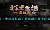 打工生活模拟器怎么娶顾雨烟?《打工生活模拟器》是一款全新模拟经营类游戏,玩家可以体验平凡人打工的生活,游戏中很多玩家想知道怎么让主角娶到顾雨烟,下面小编给大家带来了打工生活模拟器娶顾雨烟的攻略,有需要的小伙伴一起来了解看看吧。《打工生活模拟器》娶顾雨烟攻略:1、表达顾雨烟需要120的好感度,送礼物如下:2、然后带顾雨烟到快餐厅吃饭,然后有了一定的好感度,去找她会触发帮忙找房子。3、这个时候去找房产中介询问,问了之后等待中介回复。4、3个小时之后,雨烟会微聊询问情况,然后我们再去找雨烟帮她搬家。5、后面在微聊会触发找钱包的任务,钱包在象棋交流会,去便民中心归还。6、然后后面会让你帮忙发20张传单,然后找不到雨烟,知道生病了,去医院给他送饭。7、后面就可以表白了。以上就是3DM小编整理带来的《打工生活模拟器》娶顾雨