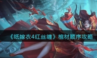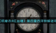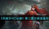 《纸嫁衣4红丝缠》是一款中式悬疑剧情解谜游戏,游戏中第四章骨牌顺序是根据巷子中的石敢当用手机可以看到眼中的骨牌的顺序得到的。今天小编就给大家带来了《纸嫁衣4红丝缠》第四章骨牌顺序一览介绍,有想了解的来看看吧! 《纸嫁衣4红丝缠》全章节通关攻略大全 《纸嫁衣4红丝缠》第四章骨牌顺序一览根据巷子中的石敢当用手机可以看到眼中的骨牌的顺序得到:第一次出现的是:左眼:红5点、右眼:红3白1点第二次出现的是:左眼:白5点、右眼:红2点第三次出现的是:左眼:白7点、右眼:红8点第四次出现的是:左眼:红1白2点、右眼:白2红4点按照盒子上的顺序排列进去即可打开。去右边的巷子里,遭遇鬼打墙,点击石狮子,用手机照,看到左右眼会出现牌,然后根据顺序54、52、36、78把左边的牌盒里面的牌按顺序摆好(注意第一个五是全红的),获得一卒