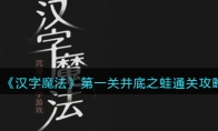 抖音小游戏汉字魔法是一款非常有趣的闯关游戏,简单又有趣,游戏第一关:井底之蛙,要求是让青蛙跳出井口,很多小伙伴不清楚具体怎么过,下面是3DM小编给大家带来的《汉字魔法》第一关井底之蛙通关攻略,感兴趣的小伙伴们一起来看看吧。>>>小编推荐:《汉字魔法》全关卡攻略大全 《汉字魔法》第一关井底之蛙通关攻略第一关:井底之蛙要求:让青蛙跳出井口1、首先我们点击【蛙】字的【虫】,然后这个【虫】就会跳到井上。 2、接着【圭】也会跳出来,并且把【虫】吃了。 3、最后我们只需要等待一下就变成了【哇】,就成功通关了。 以上就是3DM小编整理带来的抖音小游戏《汉字魔法》第一关井底之蛙通关攻略,更多关卡攻略,请点击关注3DM手游网,小编将持续为您更新!